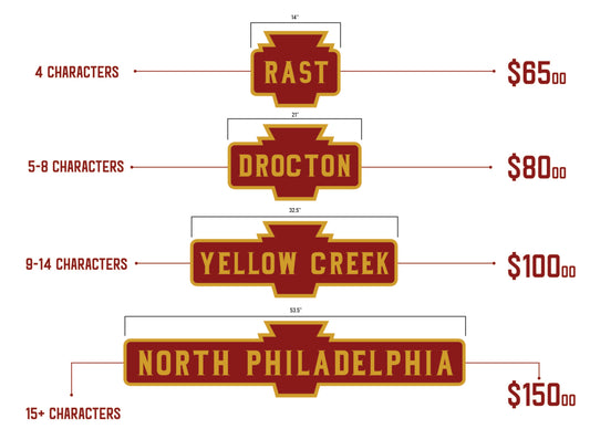 Pennsylvania Railroad Wood Keystone Station Sign 1/2 Scale. Customizable Condensed Lettering