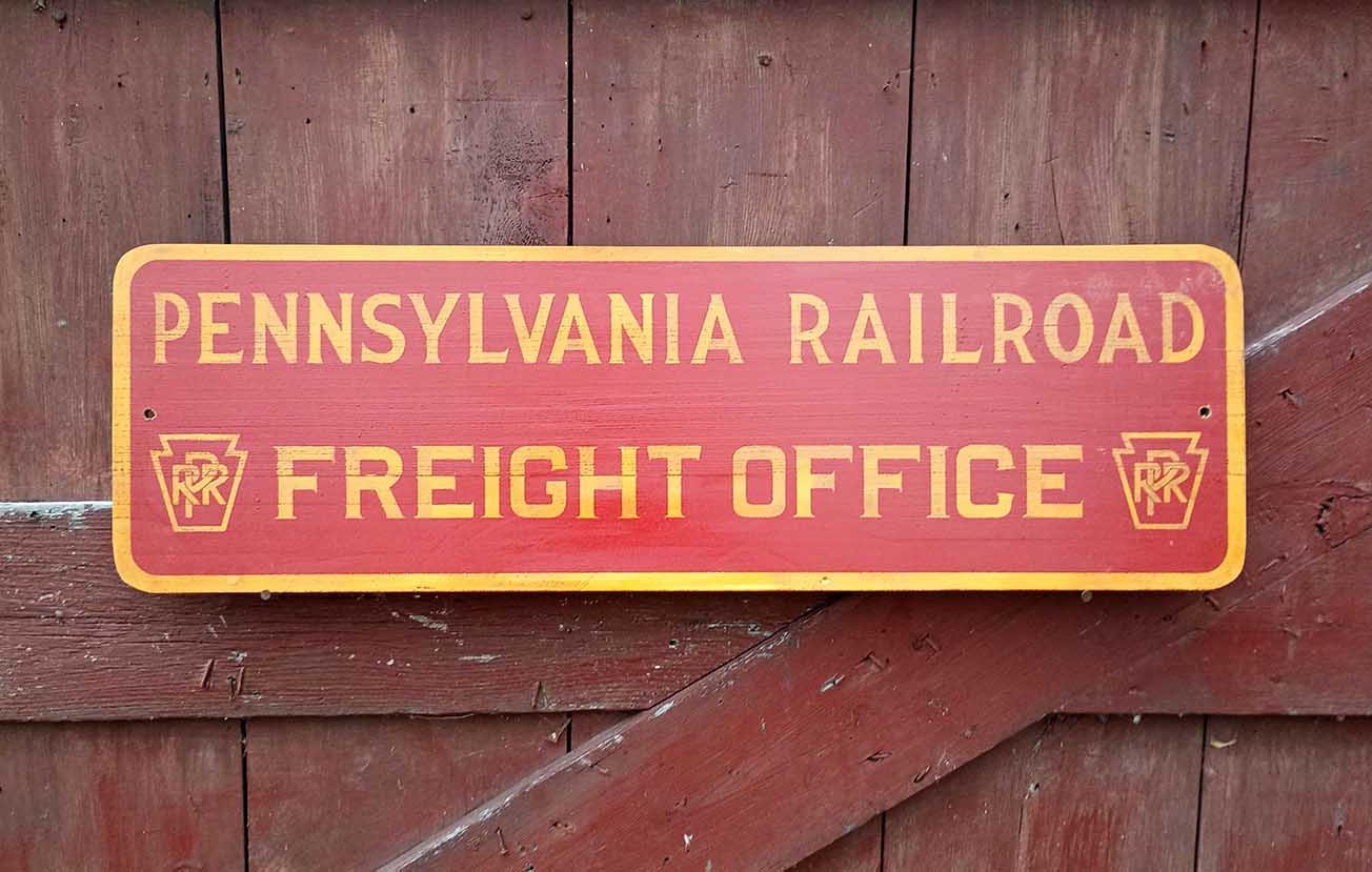 PRR Freight Office sign, made of reclaimed lumber.