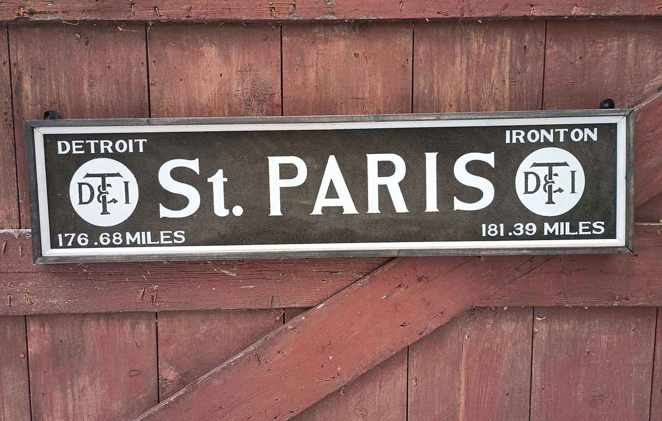 1/2 scale DT&I Station for St. Paris, Ohio. Built to DT&I sign standards and smaltz-painted.