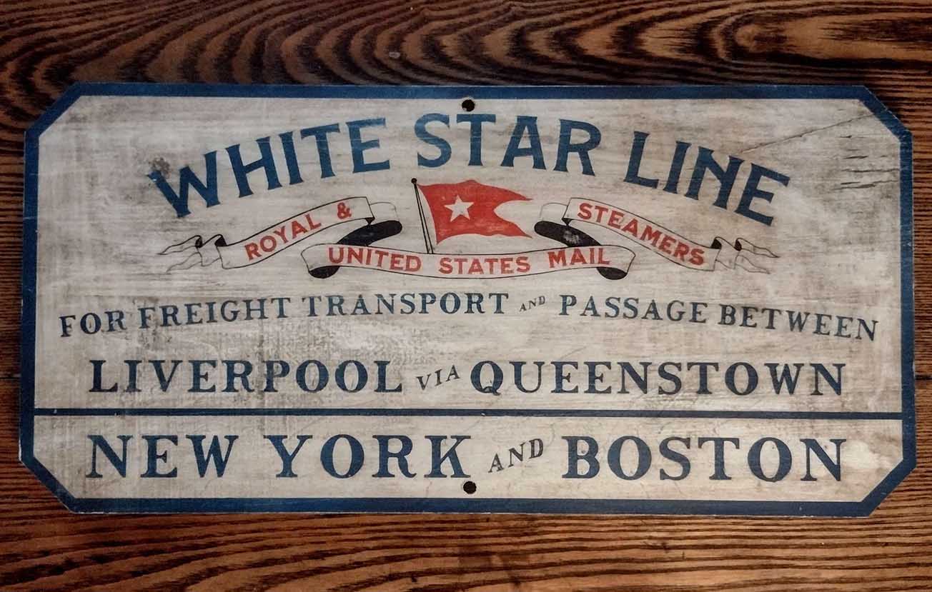 White Star Line Royal & US Mail Steamers advertising sign. Aged and Distressed.