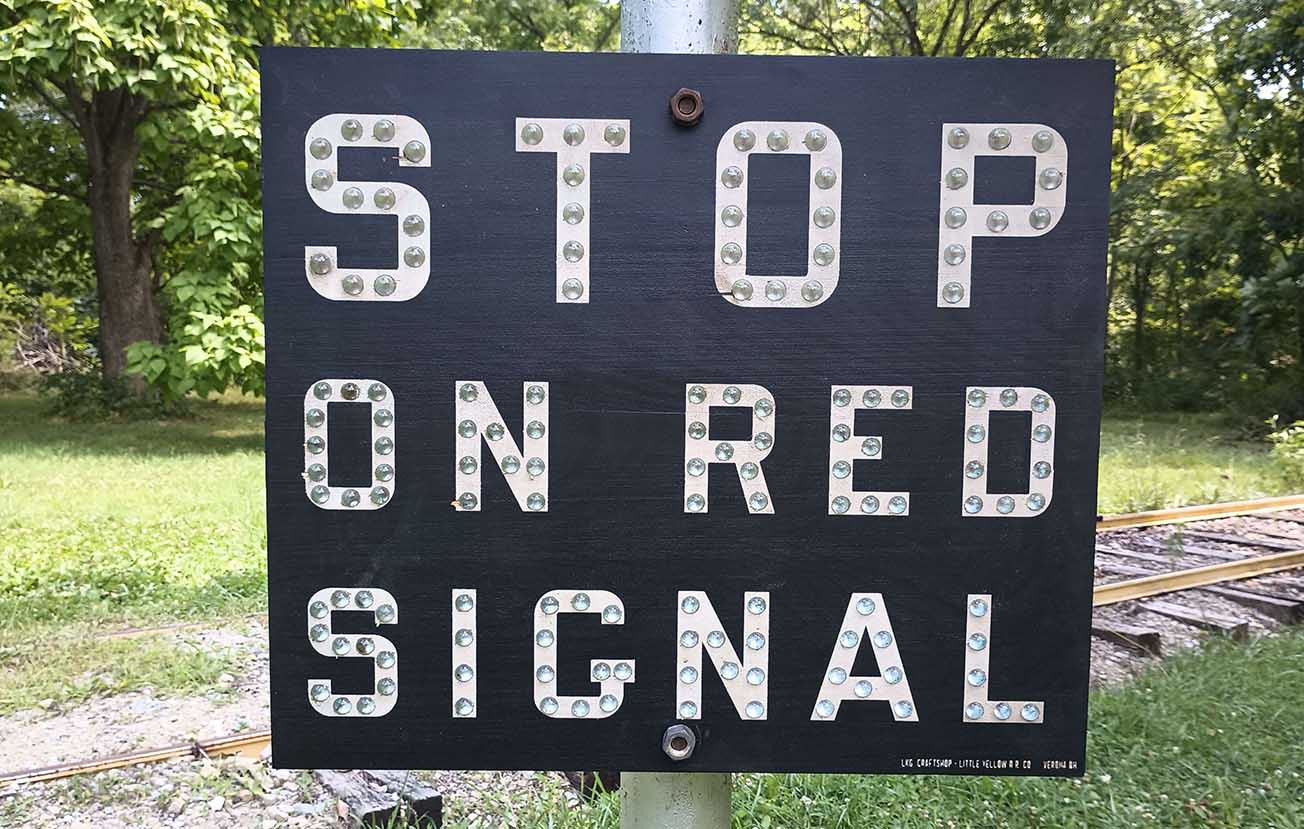 Stop On Red Signal Sign. Made with custom made reflective cat-eye marbles.