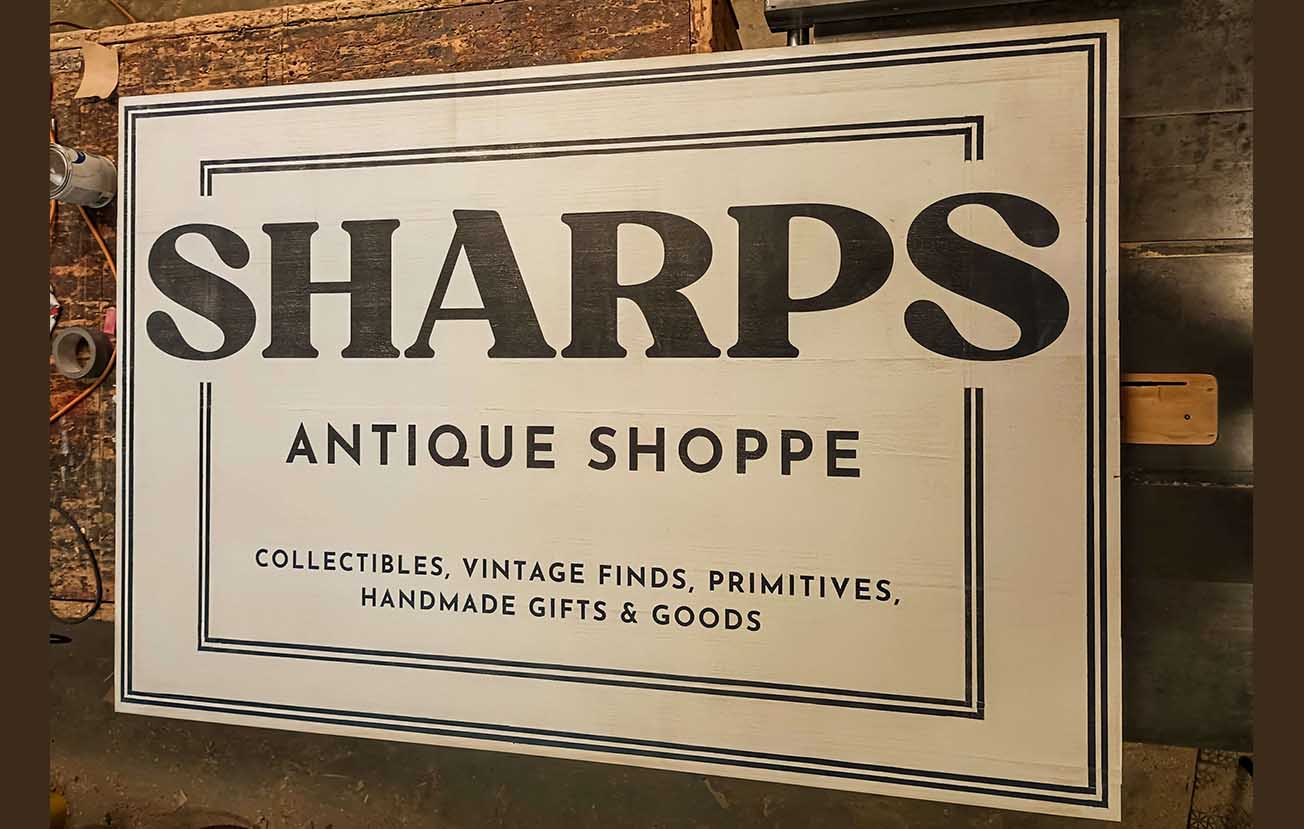 Antique Shop sign, measuring 4' x 8'. Our largest sign to date.